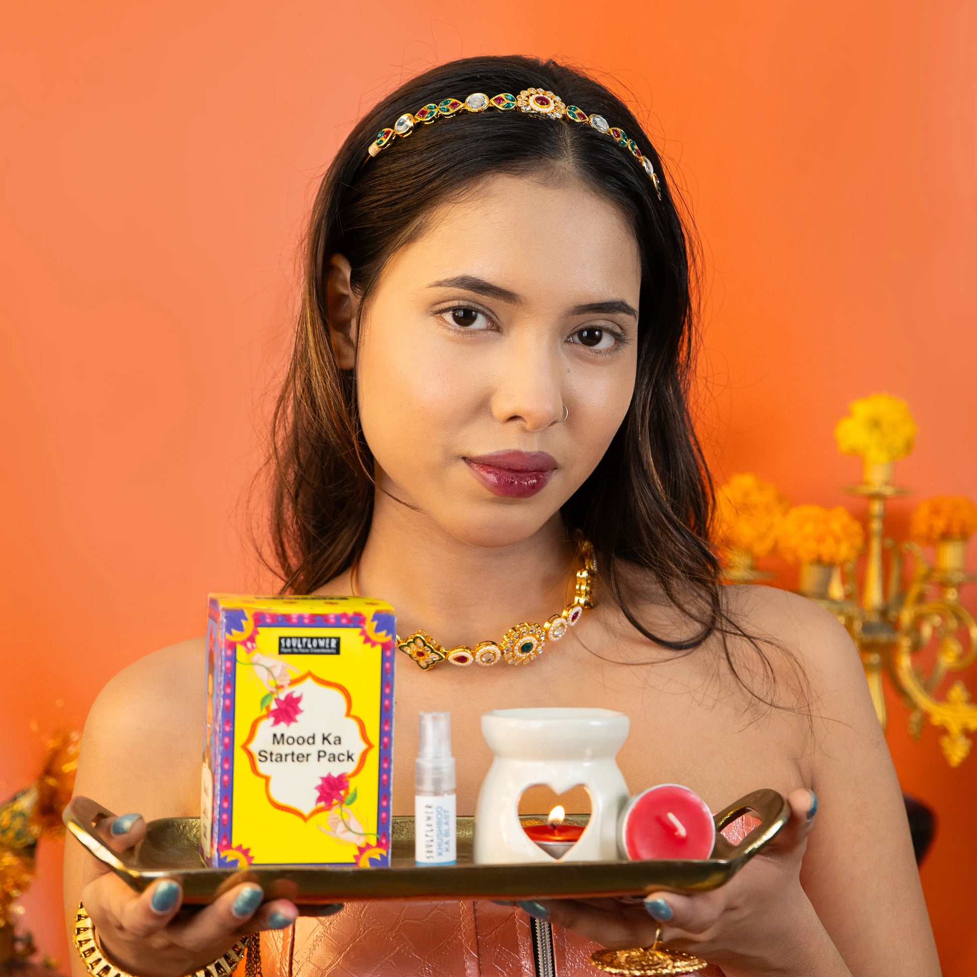 - Baby Diffuser - just plug it in and let the magic begin. Aroma Oil – Spread the fragrance of celebration in every corner, making your home instantly festive. T-light Candle – Because no shaadi ki taiyaari is complete without a warm, glowing sparkle.