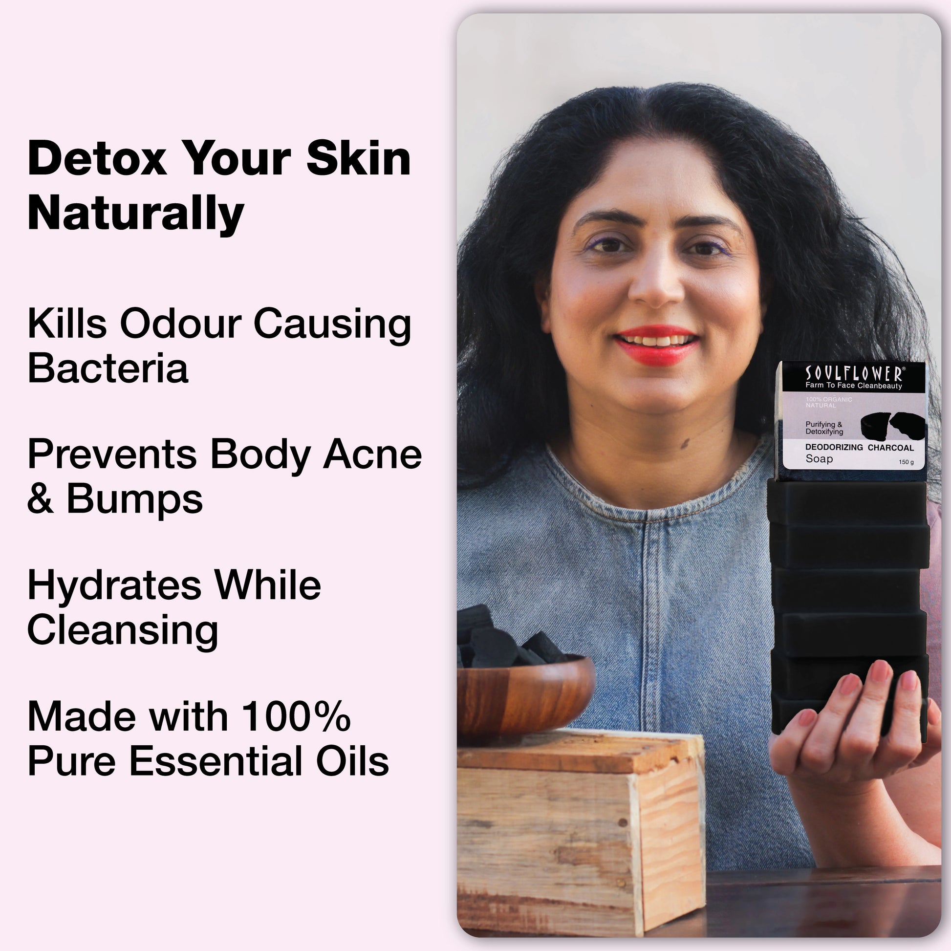 - Activated Charcoal for purifying & detoxifying skin.